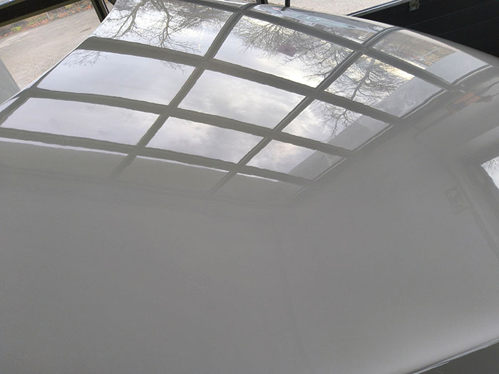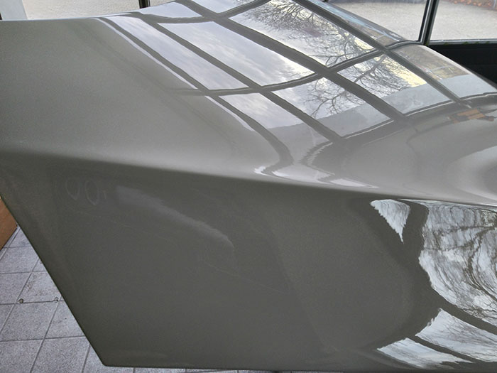 Nach fachgerechter Vorbereitung mit schleifen, grundieren  und professioneller Neulackierung war die Motorhaube optisch wieder auf Neuwagenniveau. Genau solche Fälle zeigen, wie viel durch Erfahrung und Technik möglich ist.
