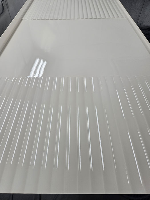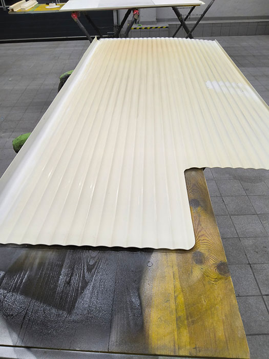 Ein besonders eindrucksvolles Beispiel ist die Aufbereitung einer stark vergilbten Wohnmobil-Duschkabine. Statt eines teuren Austauschs entschied sich der Kunde für eine professionelle Lackierung – eine deutlich günstigere Lösung, vor allem bei älteren Fahrzeugen, für die Ersatzteile oft nicht mehr erhältlich sind.